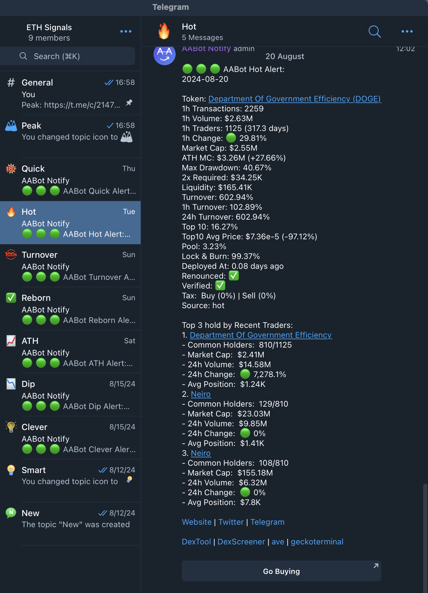 AABot not only provides original alerts (introduced in [Alert Channel](https://aabot.gitbook.io/aabot/token-alerts/alert-channel)) but also allows users to set custom filtering criteria to create personalized alerts.